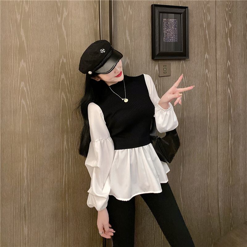 【送料無料】 トップス ニット ドッキング ブラウス ボリュームスリーブ リブ 長袖 ペプラム モノトーン かわいい 大人可愛い きれいめ シンプル カジュアル 大人 上品 おしゃれ お洒落 かっこいい 大人可愛い 大人女子 こなれ感 ラフ キュート ガーリー ルーズ 10代 20代 レディース 通勤 学生 通学 デート お出かけ 女子会 お泊まり 休日 着回し 普段使い 重ね着 韓国系 オルチャン ファッション コーデ スタイル モテ 体系カバー 脚長 トレンド 流行 インスタ映え