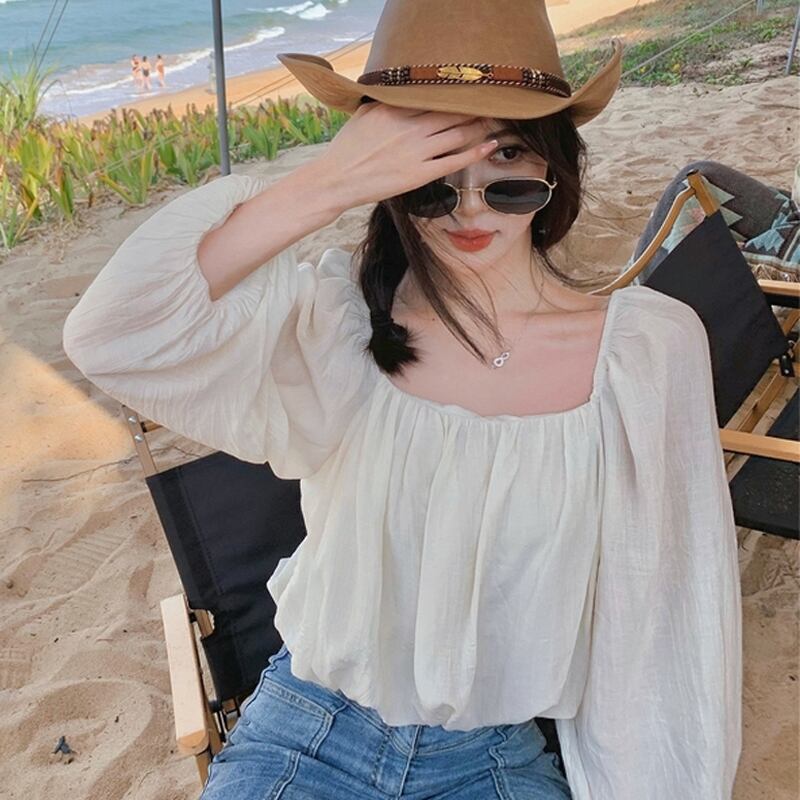 【送料無料】トップス ブラウス ミディアム丈 長袖 パフスリーブ スクエアネック かわいい 大人可愛い きれいめ シンプル 大人 上品 おしゃれ お洒落 大人女子 こなれ感 ラブリー キュート エレガント 主役級 存在感 無地 春 秋 10代 20代 30代 レディース オフィス ビジネス OL 通勤 学生 通学 デート 女子会 休日 着回し 普段使い 韓国 韓国系 オルチャン ファッション コーデ スタイル モテ 新作 プチプラ トレンド 流行 S M L 色展開 アプリコット