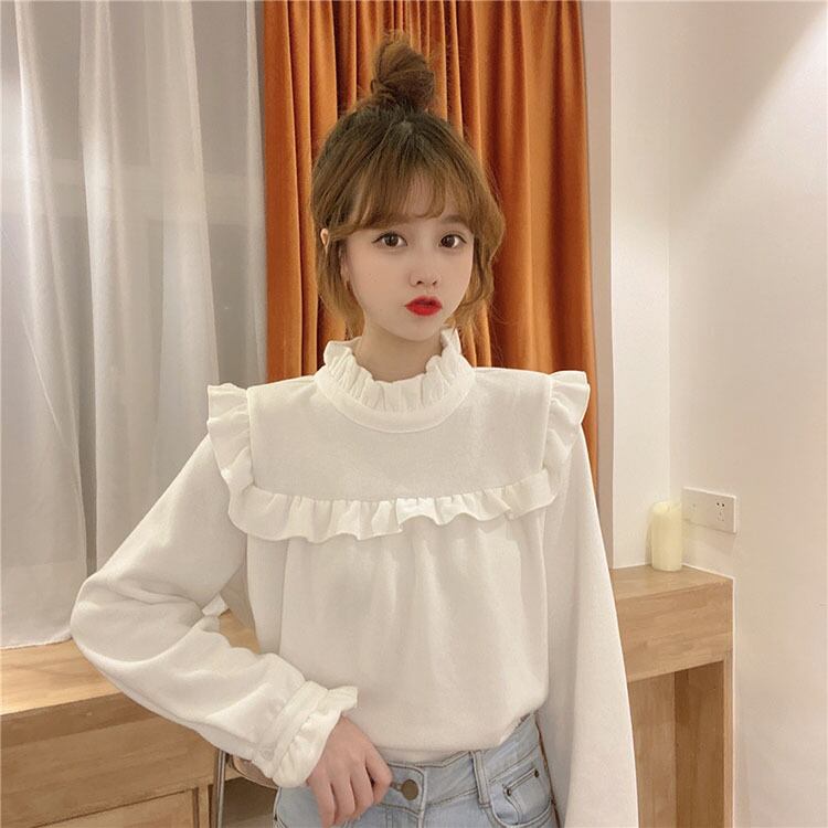 【送料無料】 トップス プルオーバー 長袖 フリルスリーブ キャンディスリーブ フリルjカラー フリル かわいい 大人可愛い カジュアル 大人 おしゃれ お洒落 大人女子 こなれ感 ラフ ラブリー キュート ガーリー 個性的 無地 秋 冬 10代 20代 30代 レディース ママ 学生 通学 デート お出かけ 女子会 お泊まり 休日 旅行 着回し 普段使い お揃い 双子 韓国 韓国系 オルチャン 定番 トレンド インスタ映え モテ 甘めコーデ レディ S M L 白 ホワイト 灰色 グレー アプリコット