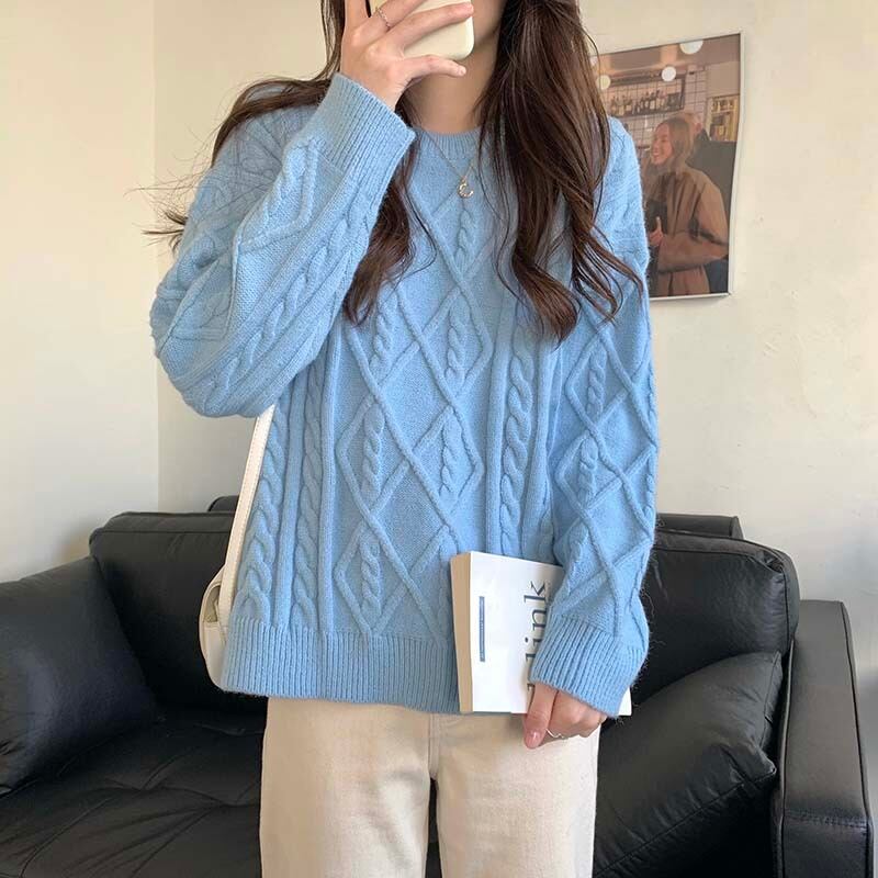 【送料無料】 トップス ケーブル編み レトロ ルーズ ゆったり ニット セーター 模様編み かわいい 大人可愛い きれいめ シンプル カジュアル 大人 上品 おしゃれ お洒落 かっこいい 大人可愛い 大人女子 こなれ感 ラフ キュート ガーリー ルーズ 10代 20代 レディース 学生 通学 デート お出かけ 女子会 お泊まり 休日 着回し 普段使い 重ね着 韓国系 オルチャン ファッション コーデ スタイル モテ 体系カバー 脚長 トレンド 流行 インスタ映え