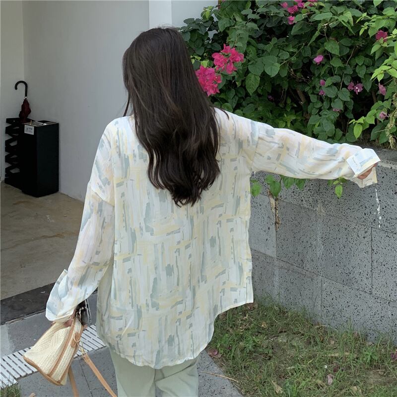 【送料無料】トップス シャツ 長袖 幾何学 マルチカラ? クラシカル オーバーサイズ オレンジ ブルー イエロー マニッシュ ハンサム ヴィンテージ風 レトロ かわいい 大人可愛い きれいめ 大人 上品 おしゃれ お洒落 こなれ感 ラブリー キュート ガーリー 主役級 存在感 フェミニン メンズライク フラワー 春 夏 10代 20代 学生 通学 デート お出かけ 女子会 休日 旅行 着回し 普段使い 韓国 韓国系 オルチャン ファッション コーデ スタイル モテ インスタ映え