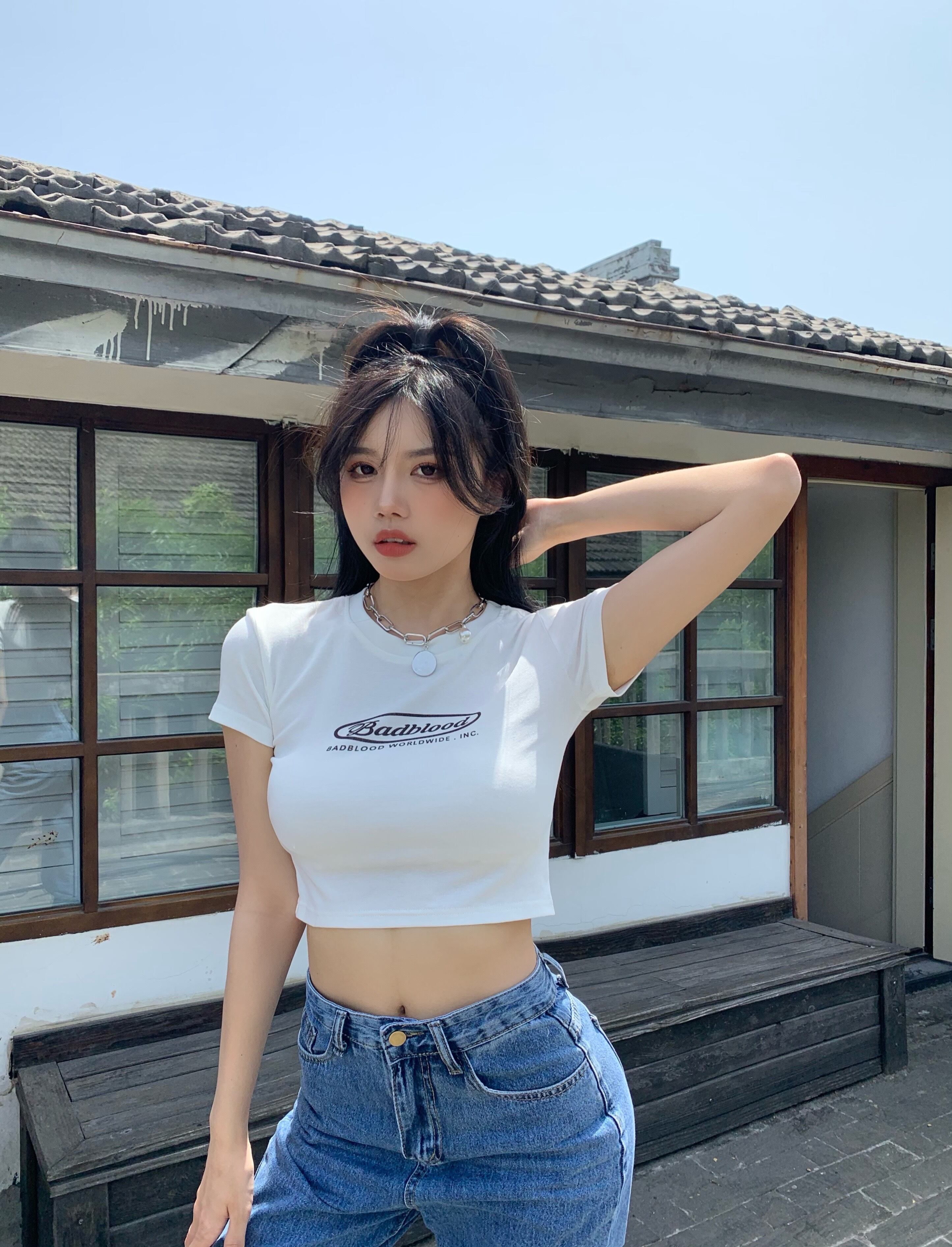 【送料無料】 トップス Tシャツ ショート ショート丈 袖あり 半袖 ラウンドネック スリム かわいい 大人可愛い カジュアル おしゃれ お洒落 かっこいい こなれ感 ラフ キュート セクシー 主役級 存在感 プリント ロゴ 10代 20代 レディース 女の子 学生 通学 デート お出かけ 女子会 休日 イベント リゾート 着回し 普段使い お揃い 双子 韓国 韓国系 オルチャン ファッション コーデ スタイル モテ インスタ映え ワンサイズ 白 ホワイト 黒 ブラック