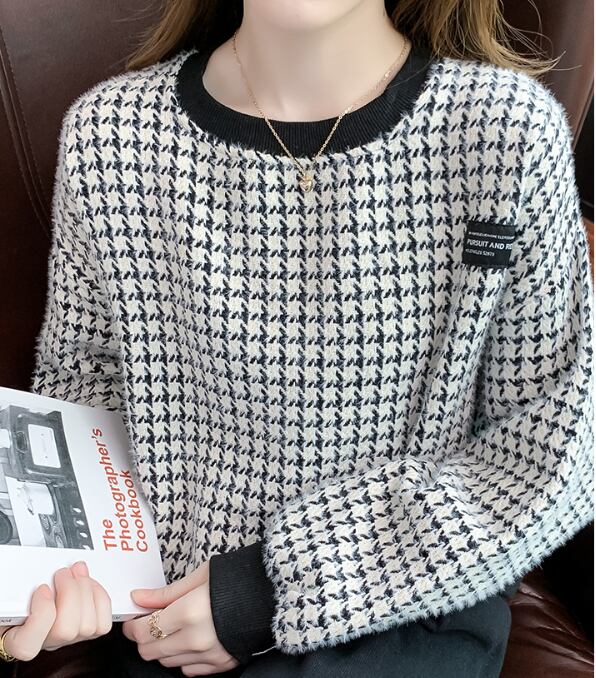 【送料無料】 トップス ニット セーター 長袖 チェック柄 ラウンドネック 総柄 ダボかわ バイカラー パイピング タグ レトロ かわいい 大人可愛い きれいめ シンプル カジュアル 大人 上品 おしゃれ お洒落 かっこいい 大人可愛い 大人女子 こなれ感 ラフ キュート ガーリー ルーズ 10代 20代 レディース 通勤 学生 通学 デート お出かけ 女子会 お泊まり 休日 着回し 普段使い 重ね着 韓国系 オルチャン ファッション コーデ スタイル モテ 体系カバー 脚長 トレンド 流行 インスタ映え