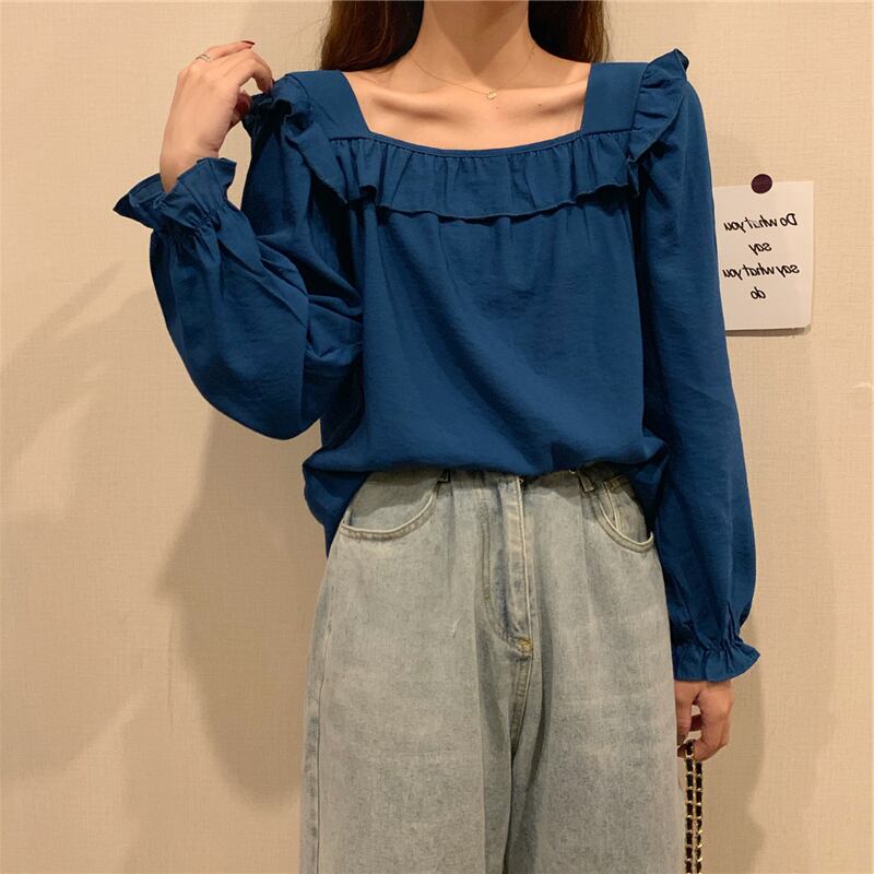 【送料無料】 トップス ブラウス プルオーバー 長袖 スクエアネック 甘め フリル かわいい 大人可愛い きれいめ 上品 おしゃれ お洒落 大人女子 こなれ感 ラブリー キュート ガーリー エレガント 主役級 存在感 フェミニン 無地 春 10代 20代 30代 レディース 学生 通学 デート お出かけ 女子会 休日 着回し 普段使い 韓国 韓国系 オルチャン ファッション コーデ スタイル モテ M L XL 2XL 3XL 4XL 大きいサイズ 白 ホワイト 青 ブルー パープル ネイビー