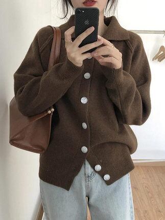 【送料無料】 トップス ニット カーディガン ジャケット 袖あり 長袖 襟付き かわいい 大人可愛い きれいめ カジュアル おしゃれ お洒落 大人女子 こなれ感 ラブリー キュート 主役級 存在感 抜け感 無地 秋 10代 20代 30代 40代 レディース 女性用 OL 通勤 学生 通学 デート お出かけ 女子会 休日 着回し 普段使い 重ね着 韓国 韓国系 オルチャン ファッション コーデ スタイル モテ インスタ映え S M L XL ゆったり ゆる ブラウン グレー イエロー