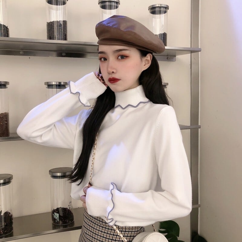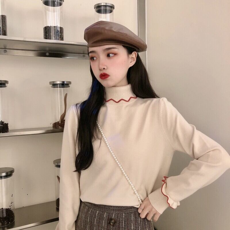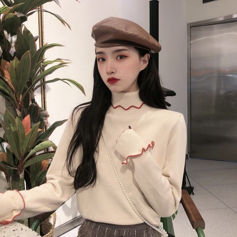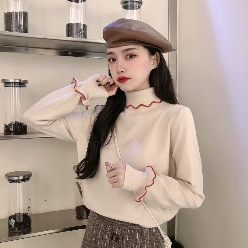 【送料無料】 トップス ニット 袖あり 長袖 ハイネック フリル パイピング かわいい 大人可愛い きれいめ 上品 おしゃれ お洒落 大人女子 こなれ感 ラブリー キュート ガーリー 主役級 存在感 フェミニン 無地 10代 20代 30代 レディース 学生 通学 デート お出かけ 女子会 休日 着回し 普段使い 重ね着 お揃い 双子 韓国 韓国系 オルチャン ファッション コーデ スタイル モテ トレンド 流行 インスタ映え ワンサイズ フリーサイズ 白 ホワイト ベージュ ライトブルー