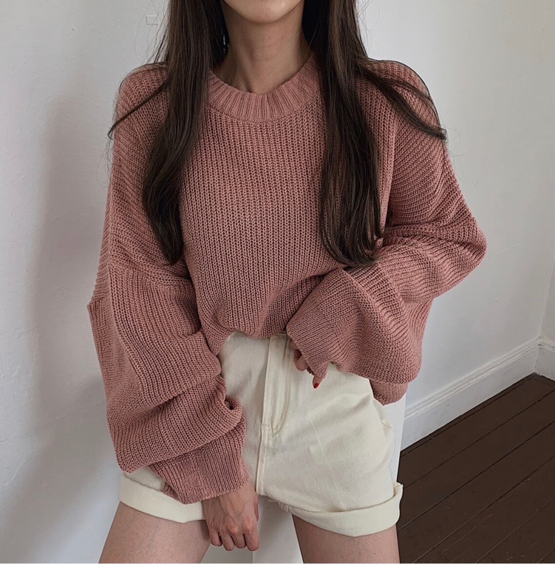 【送料無料】 トップス ニット プルオーバー 長袖 ボリューム袖 ドロップショルダー かわいい 大人可愛い きれいめ シンプル カジュアル 大人 おしゃれ お洒落 大人女子 こなれ感 ラフ ラブリー キュート 主役級 存在感 無地 秋 冬 10代 20代 30代 40代 レディース 女性用 OL 通勤 学生 通学 デート お出かけ 女子会 休日 着回し 普段使い 重ね着 韓国 韓国系 オルチャン ファッション コーデ スタイル 楽ちん モテ 体系カバー インスタ映え M L XL 2XL 3XL