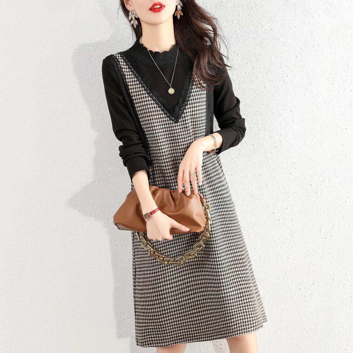 【送料無料】 ワンピース 長袖 ひざ丈 レース かわいい 大人可愛い きれいめ 大人 上品 おしゃれ お洒落 大人女子 こなれ感 ラブリー キュート エレガント 主役級 存在感 無地 柄 チェック柄 秋 発表会 演奏会 お呼ばれ 10代 20代 30代 レディース 女性用 OL 通勤 学生 通学 デート お出かけ 女子会 休日 着回し 普段使い 韓国 韓国系 オルチャン ファッション コーデ スタイル モテ 体系カバー プチプラ トレンド 流行 インスタ映え S M L XL 2XL