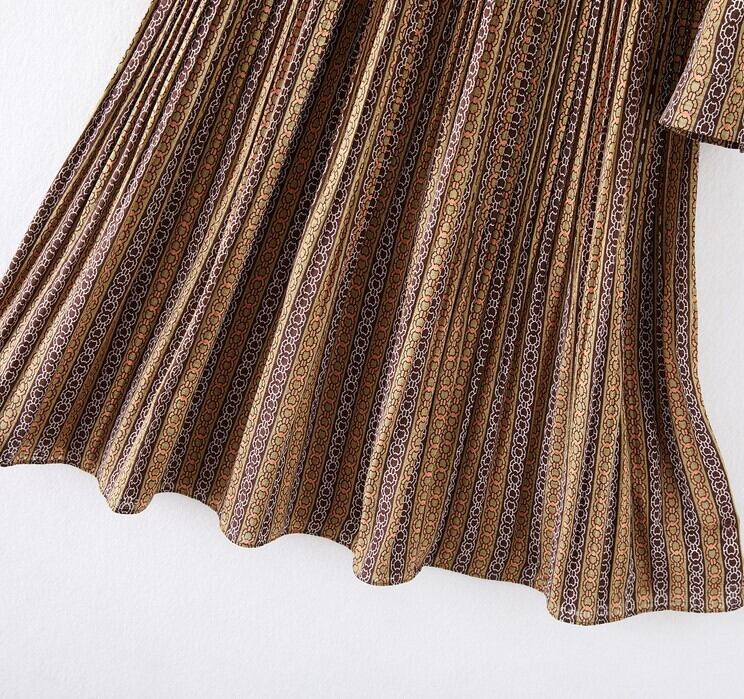 【送料無料】 ワンピース 膝下 ロング ロング丈 袖あり 長袖 襟付き Aライン プリーツ ハイウエスト かわいい 大人可愛い きれいめ 大人 上品 おしゃれ お洒落 レトロ こなれ感 ラブリー キュート エレガント 主役級 存在感 柄 秋 10代 20代 30代 レディース 女性用 学生 通学 デート お出かけ 女子会 休日 着回し 普段使い 重ね着 韓国 韓国系 オルチャン ファッション コーデ スタイル モテ インスタ映え 発表会 演奏会 お呼ばれ S M L XL 2XL 茶色 ブラウン
