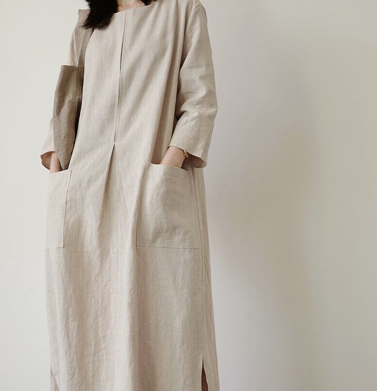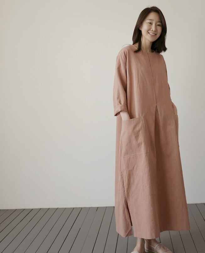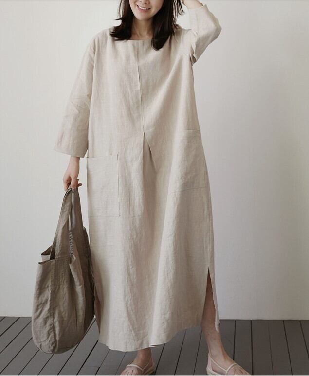【送料無料】 ワンピース ロング ロング丈 袖あり 長袖 ラウンドネック スリット サイドスリット ポケット かわいい 大人可愛い きれいめ シンプル カジュアル 大人 おしゃれ お洒落 こなれ感 ラフ 存在感 抜け感 無地 秋 20代 30代 40代 レディース 女性用 ママ 学生 通学 デート お出かけ 公園デビュー 女子会 着回し 普段使い 韓国 韓国系 オルチャン ファッション コーデ スタイル モテ S M L XL ゆったり ゆる ベージュ ピンク