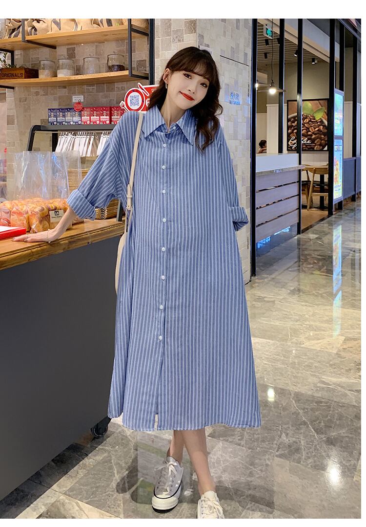 【送料無料】 ワンピース シャツワンピース ロング ロング丈 袖あり 長袖 襟付き かわいい 大人可愛い きれいめ カジュアル シンプル おしゃれ お洒落 大人女子 こなれ感 ラブリー キュート ガーリー フォーマル フェミニン ストライプ 春 秋 お呼ばれ 10代 20代 30代 レディース 女性用 学生 通学 デート お出かけ 女子会 休日 着回し 普段使い 韓国 韓国系 オルチャン ファッション コーデ スタイル 流行 インスタ映え M L XL 2XL 大きいサイズ ゆったり ゆる 青 ブルー