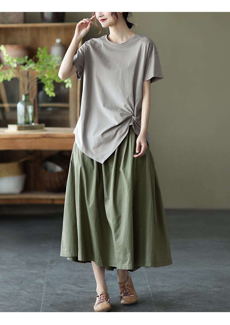 裾に向かって広がるAラインは身体のラインをひろわず、