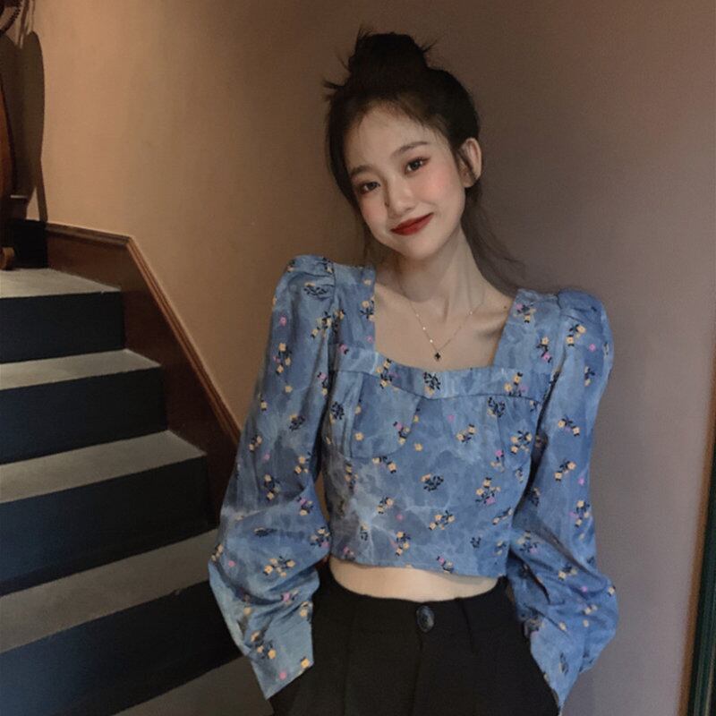 【送料無料】 トップス デニムブラウス カットソー 長袖 スクエアネック パフスリーブ 小花柄 花柄 かわいい 大人可愛い カジュアル 大人 おしゃれ お洒落 大人女子 こなれ感 ラフ ラブリー キュート ガーリー 個性的 主役級 存在感 抜け感 春 秋 10代 20代 30代 レディース 女性用 学生 通学 デート お出かけ 女子会 お泊まり 休日 イベント 旅行 着回し 普段使い お揃い 双子 韓国 韓国系 オルチャン トレンド 流行 S M L XL 2XL フリーサイズ 青 ブルー デニムカラー