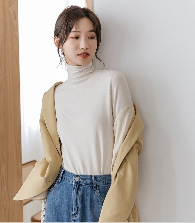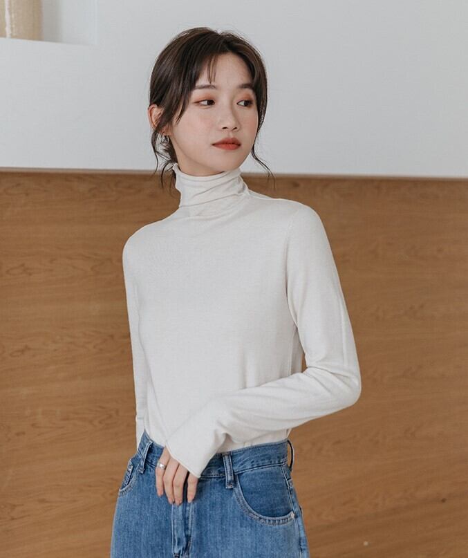 ニットやカーディガン、ベストなどのインナーとして使えるハイネックトップスです。