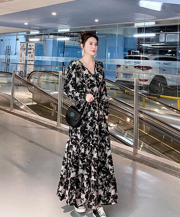 【送料無料】 ワンピース 膝下 ロング ロング丈 Vネック フレア ティアード ハイウエスト かわいい 大人可愛い きれいめ カジュアル おしゃれ お洒落 こなれ感 ラフ セクシー エレガント 主役級 存在感 フェミニン 無地 柄 秋 発表会 演奏会 お呼ばれ 10代 20代 30代 40代 レディース 女性用 OL 通勤 学生 通学 デート お出かけ 女子会 着回し 普段使い 韓国 韓国系 オルチャン ファッション コーデ スタイル モテ S M L XL 2XL 3XL 大きいサイズ 黒 ブラック