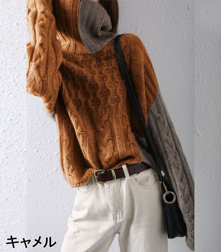 【送料無料】 トップス ニット セーター プルオーバー 長袖 ハイネック かわいい 大人可愛い きれいめ カジュアル おしゃれ お洒落 レトロ こなれ感 ラフ ラブリー キュート 主役級 存在感 秋 冬 10代 20代 30代 レディース 女性用 学生 通学 デート お出かけ 女子会 休日 着回し 普段使い 韓国 韓国系 オルチャン ファッション コーデ スタイル モテ トレンド 流行 インスタ映え S M L XL 2XL 3XL カラーブロック ベージュ キャメル ブラウン 黒 ブラック