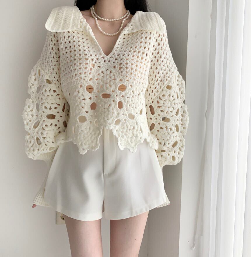 【送料無料】 トップス ニット セーター ショート ショート丈 袖あり 長袖 襟付き 薄手 かわいい 大人可愛い きれいめ おしゃれ お洒落 大人女子 こなれ感 ラブリー キュート ガーリー 個性的 主役級 存在感 春 秋 10代 20代 レディース 女性用 学生 通学 デート お出かけ 女子会 休日 着回し 普段使い 重ね着 韓国 韓国系 オルチャン ファッション コーデ スタイル モテ トレンド 流行 インスタ映え ワンサイズ フリーサイズ 白 ホワイト