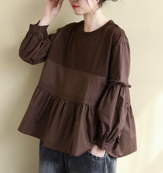 【送料無料】 トップス カットソー 袖あり 長袖 ラウンドネック フレア かわいい 大人可愛い きれいめ カジュアル おしゃれ お洒落 こなれ感 キュート ガーリー ルーズ エレガント 主役級 存在感 無地 春 秋 10代 20代 30代 レディース 女性用 女の子 学生 通学 デート お出かけ 女子会 休日 着回し 普段使い 韓国 韓国系 オルチャン ファッション コーデ スタイル モテ トレンド 流行 インスタ映え M L XL 2XL ゆる サイズ 黒 ブラック 茶色 ブラウン