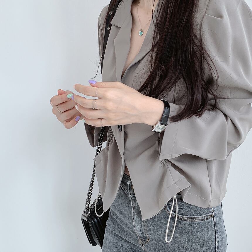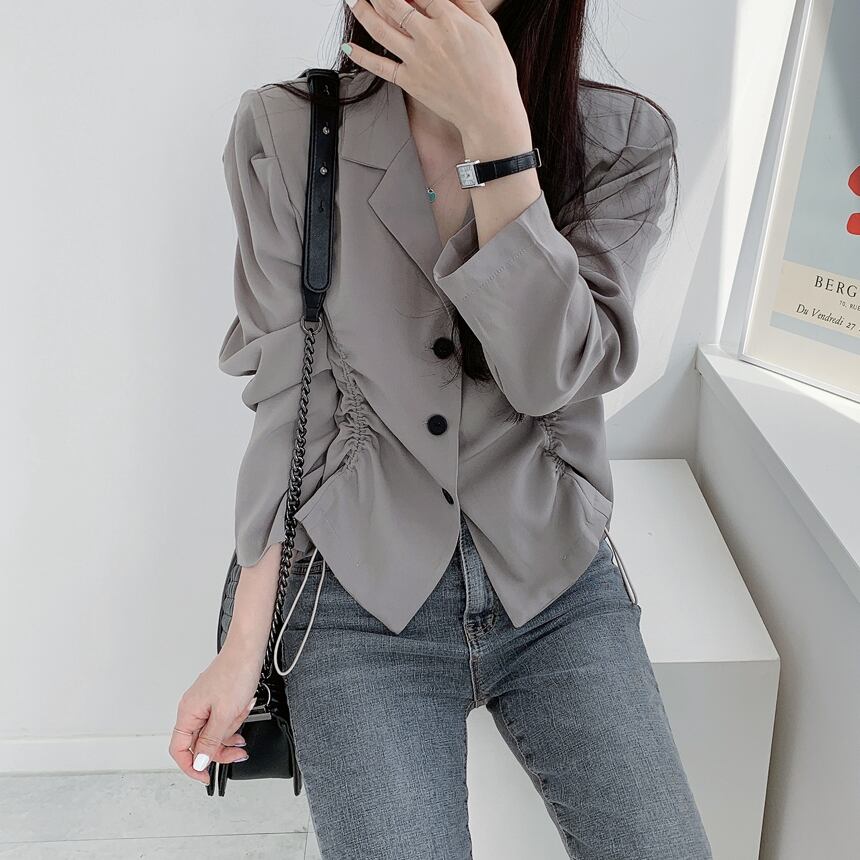 【送料無料】 アウター ジャケット 羽織り 襟付き シャーリング くしゅくしゅ 長袖 vネック かわいい 大人可愛い シンプル カジュアル 大人 おしゃれ お洒落 大人女子 こなれ感 ラフ 上品 きれいめ クール 個性的 主役級 存在感 抜け感 春 夏 秋 冬 10代 20代 30代 レディース 女性用 通期 OL オフィスカジュアル 学生 通学 デート お出かけ 女子会 休日 イベント 旅行 着回し 普段使い 韓国 韓国系 オルチャン モテ トレンド 流行 フリーサイズ 黒 ブラック 灰色 グレー