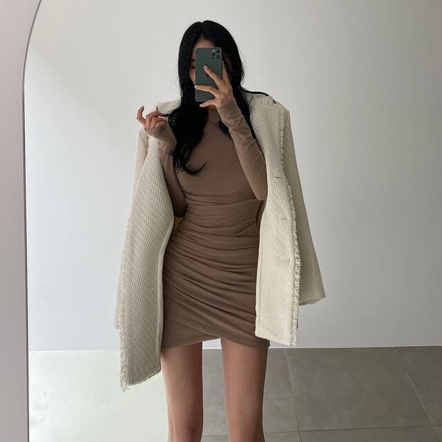 ボディラインに沿ったシルエットが女性らしいワンピースです。