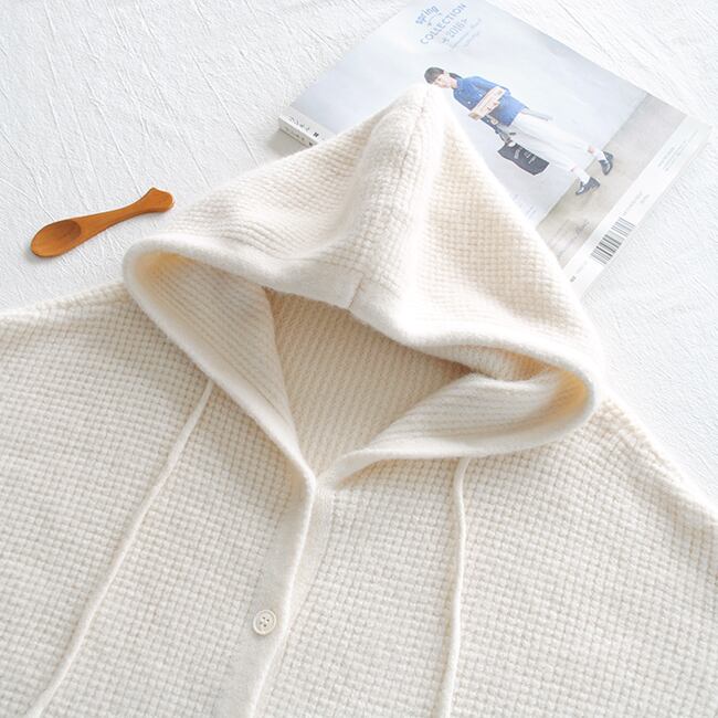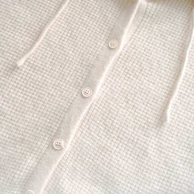 ワッフル素材がかわいいフード付きカーディガン