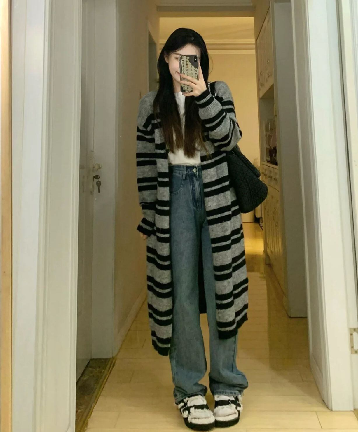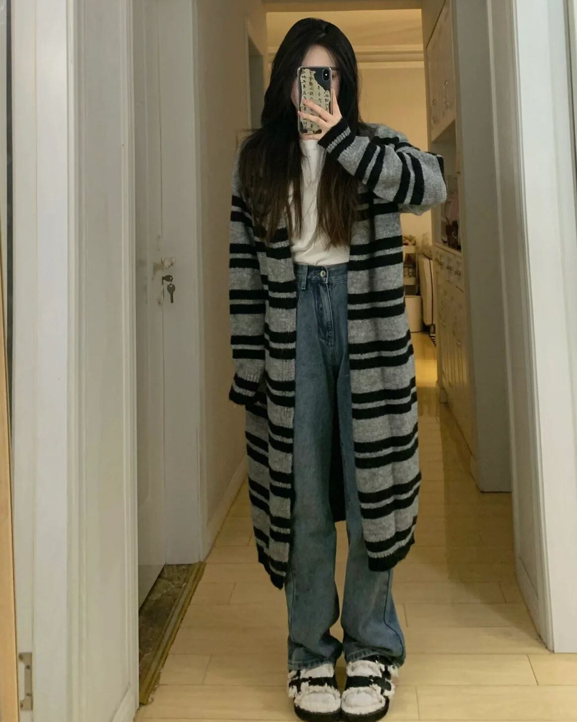 【送料無料】 トップス カーディガン ニットカーディガン ロングカーディガン ロング丈 ボーダー柄 羽織り 大人可愛い シンプル カジュアル 大人 おしゃれ お洒落 大人女子 こなれ感 ラフ マニッシュ ストリート ラブリー キュート ガーリー 個性的 主役級 存在感 抜け感 春 秋 冬 10代 20代 30代 40代 レディース 女性用 学生 通学 デート お出かけ 女子会 お泊まり 休日 イベント 旅行 着回し 普段使い 韓国 韓国系 オルチャン モテ トレンド 流行 S M L 灰色 グレー