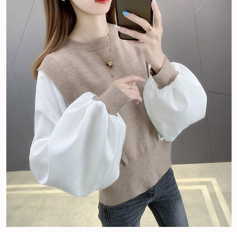 ぽわんとしたパフスリーブが大人可愛い重ね着風トップスです。