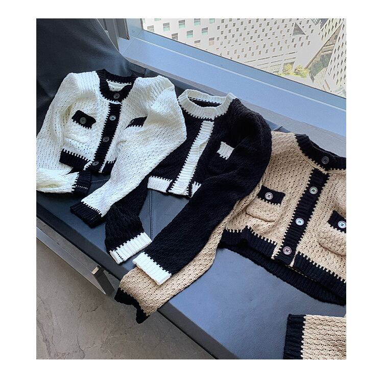 【送料無料】 トップス カーディガン ジャケット ニットカーディガン バイカラー クラシカル レトロ ライン配色 ショート丈 クロップド丈 かわいい 大人可愛い シンプル カジュアル 大人 おしゃれ お洒落 大人女子 こなれ感 ラフ 存在感 抜け感 春 夏 秋 冬 10代 20代 30代 40代 レディース 女性用 学生 通学 デート お出かけ 女子会 お泊まり 休日 イベント 旅行 着回し 普段使い 韓国 韓国系 オルチャン モテ トレンド 流行 フリーサイズ 白 ホワイト 黒 ブラック カーキ