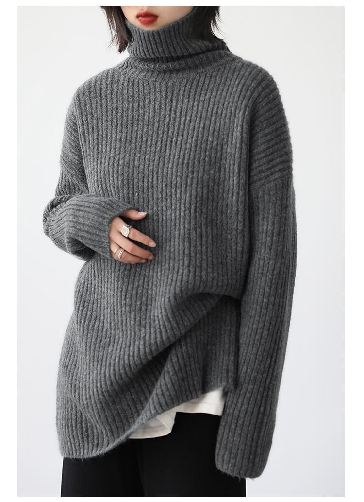 【送料無料】 トップス ニット セーター 長袖 タートルネック ハイネック ミディアム丈 かわいい 大人可愛い カジュアル おしゃれ お洒落 かっこいい こなれ感 ラフ ラブリー キュート ルーズ 主役級 存在感 無地 秋 冬 10代 20代 30代 40代 レディース 女性用 学生 通学 デート お出かけ 女子会 着回し 普段使い 韓国 韓国系 オルチャン ファッション コーデ スタイル モテ 体型カバー トレンド 流行 インスタ映え S M L XL ゆったり ゆる ライトグレー グレー 黒 ブラック