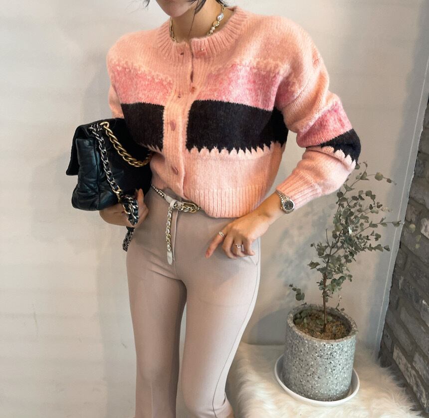 【送料無料】 トップス カーディガン ニットカーディガン 配色ニット マルチカラー デザインニット ボーダー ショート丈 クロップド丈 コンパクト丈 かわいい 大人可愛い カジュアル 大人 おしゃれ お洒落 大人女子 こなれ感 ガーリー 個性的 主役級 存在感 抜け感 春 秋 冬 10代 20代 30代 レディース 女性用 学生 通学 デート お出かけ 女子会 お泊まり 休日 着回し 普段使い 韓国 韓国系 オルチャン モテ トレンド 流行 フリーサイズ 灰色 グレー アプリコット ピンク 紺 ネイビー