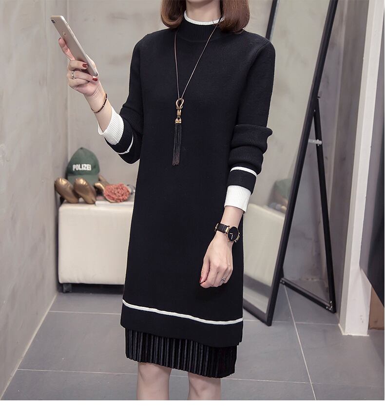 【送料無料】 ワンピース ニット セーター ロング ロング丈 長袖 ハイネック かわいい 大人可愛い きれいめ 大人 上品 おしゃれ お洒落 レトロ こなれ感 エレガント 主役級 存在感 フェミニン 無地 秋 冬 20代 30代 40代 50代 レディース 女性用 通勤 学生 通学 デート お出かけ 女子会 休日 着回し 普段使い 韓国 韓国系 オルチャン ファッション コーデ スタイル モテ トレンド 流行 L XL 2XL 3XL 4XL 5XL 大きいサイズ アプリコット 黒 ブラック バイカラー