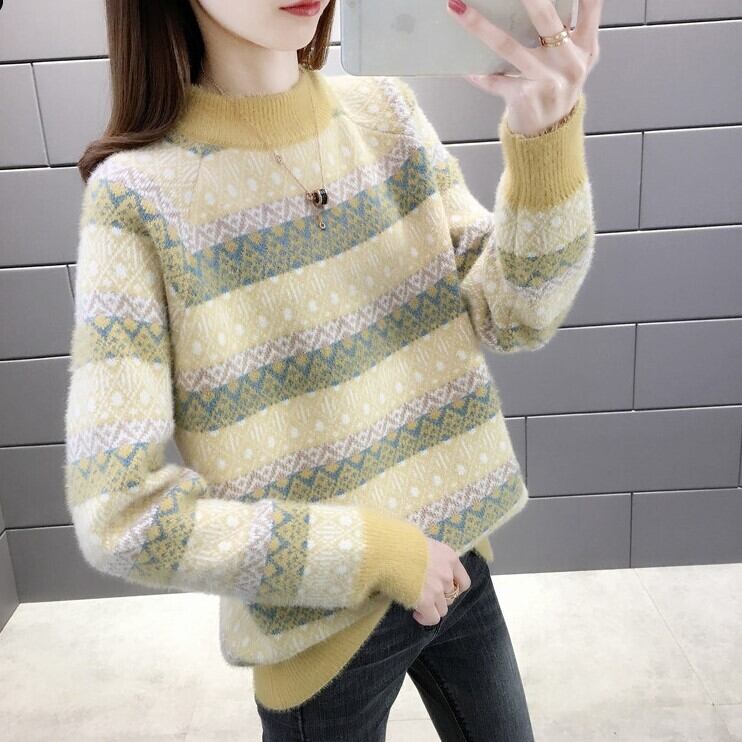 【送料無料】 トップス ニット セーター プルオーバー 長袖 ハイネック ハーフタートルネック かわいい 大人可愛い きれいめ シンプル カジュアル 大人 上品 おしゃれ お洒落 かっこいい こなれ感 ルーズ クール ボーダー ストライプ 秋 冬 10代 20代 30代 40代 レディース 女性用 OL 通勤 学生 通学 デート お出かけ 女子会 着回し 普段使い 韓国 韓国系 オルチャン ファッション コーデ スタイル モテ プチプラ S M L XL ブラウン ピンク ブルー レッド イエロー